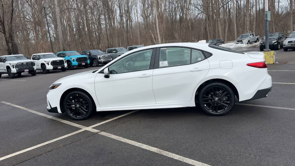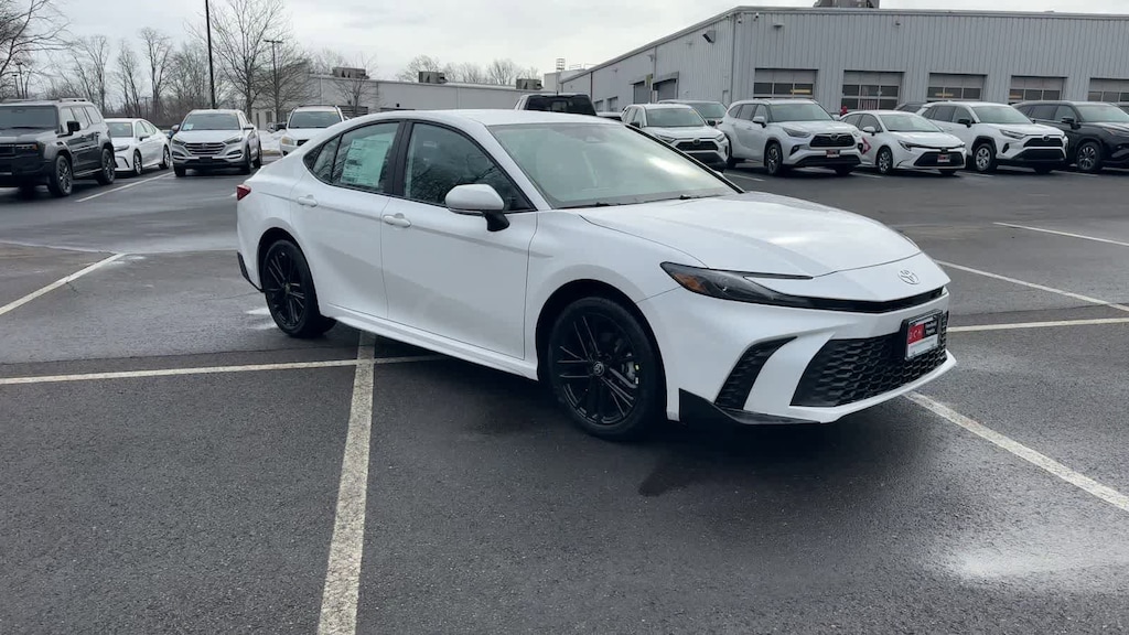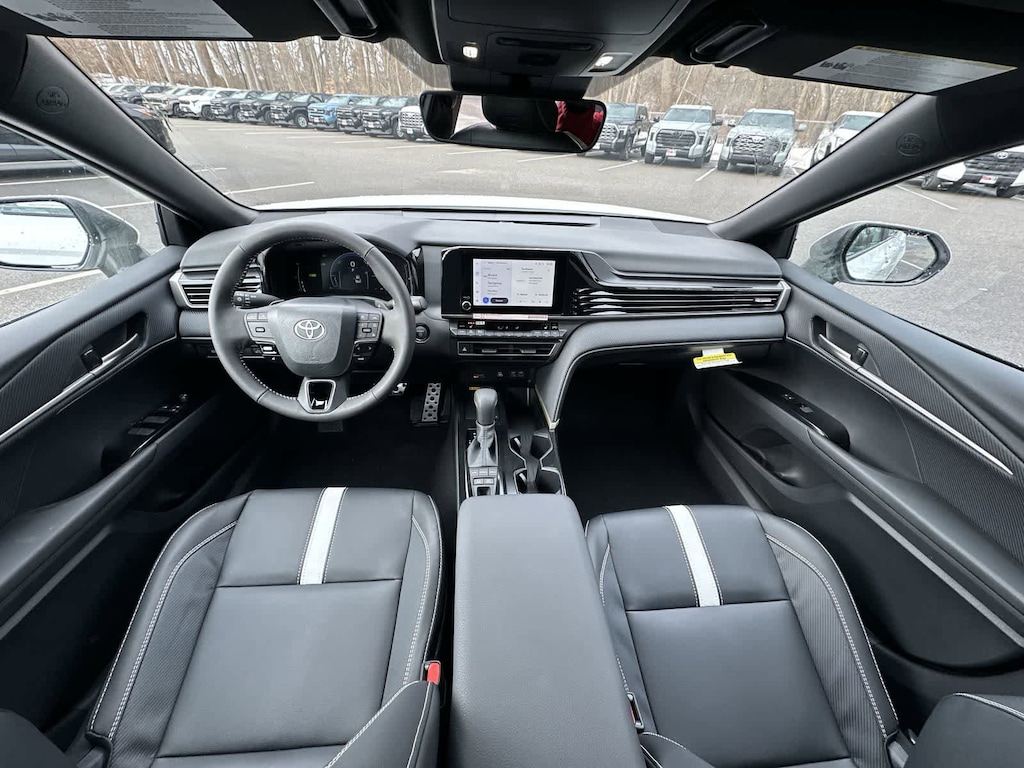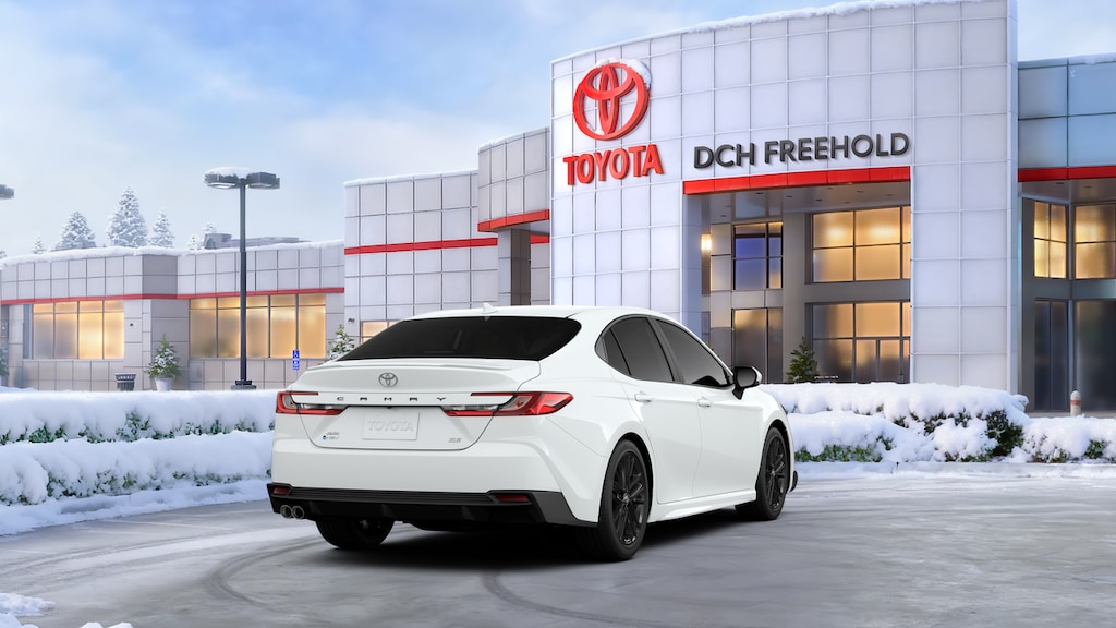 Ice Cap 2026 Toyota Camry SE AWD eCVT 2.5L 4-Cylinder 16V DOHC Camry SE, 4D Sedan, 2.5L 4-Cylinder 16V DOHC, eCVT, AWD, Ice Cap, Black w/SofTex and Fabric Seat Trim, ABS brakes, Active Cruise Control, Alloy wheels, Auto-Dimming Rearview Mirror with HomeLink, Cold Weather Package, Convenience Package, Electronic Stability Control, Front dual zone A/C, Heated door mirrors, Heated Front Seats, Heated Leather Steering Wheel with Paddle Shifters, Illuminated entry, Low tire pressure warning, Remote keyless entry, Smart Key System on Front Doors, Traction control.