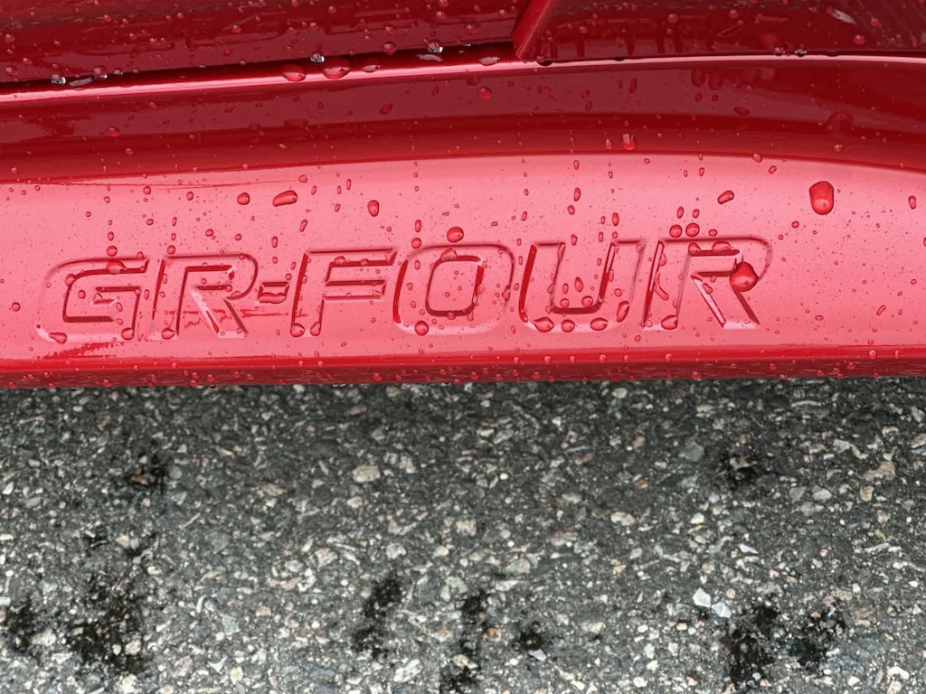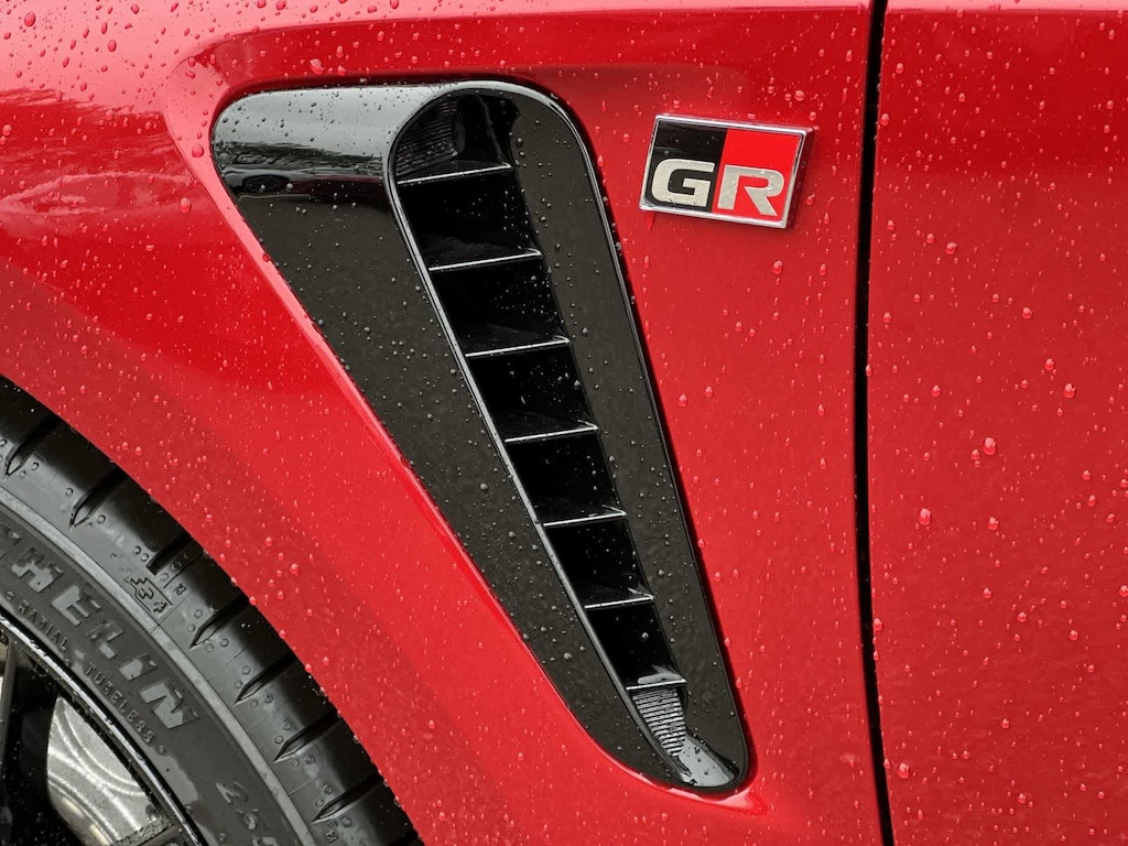 - Gloss-black front fender vent and GR badge