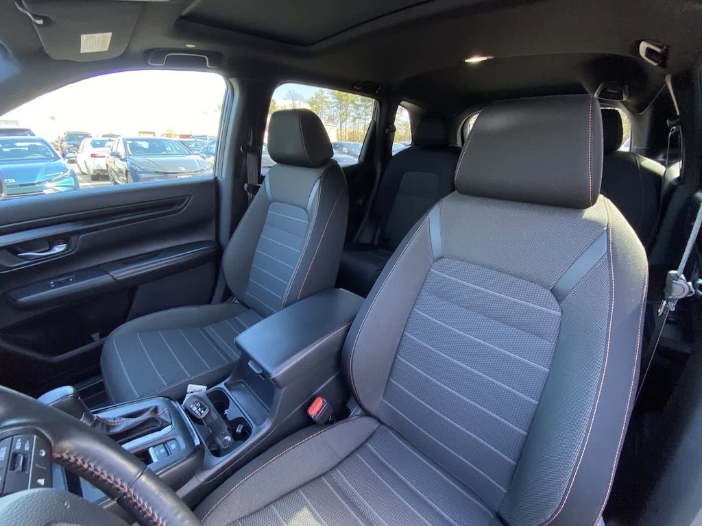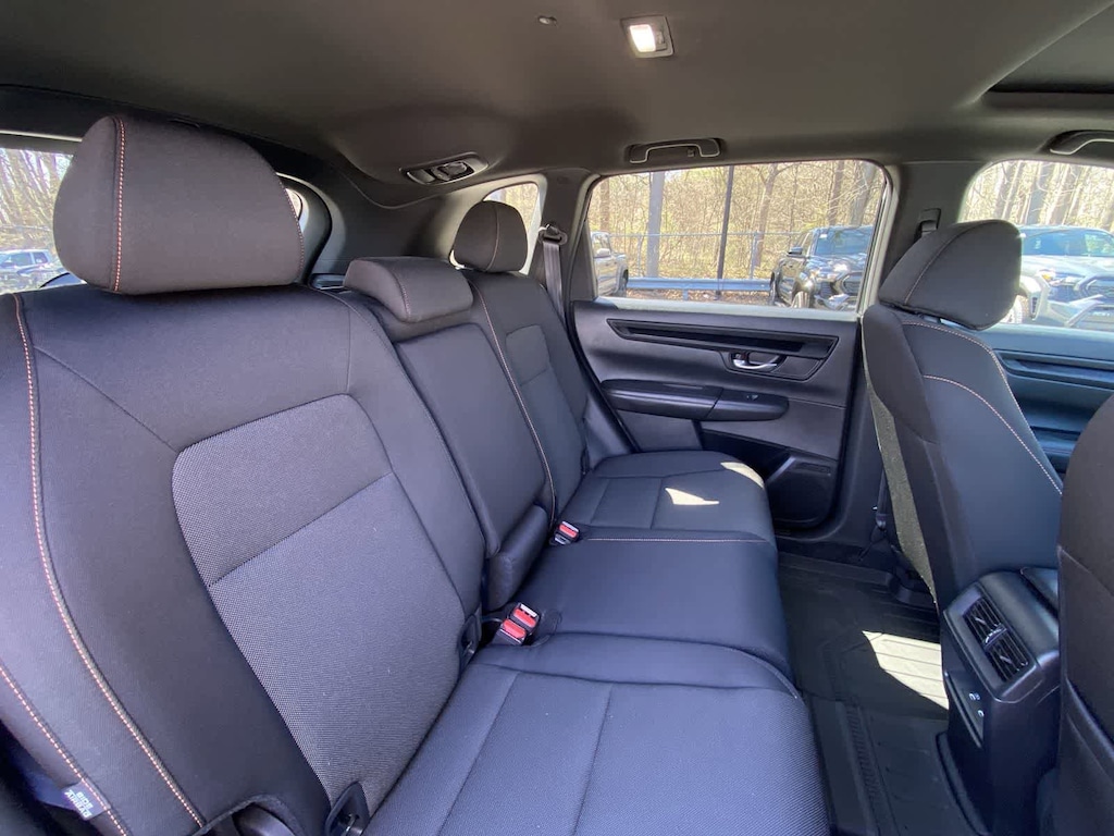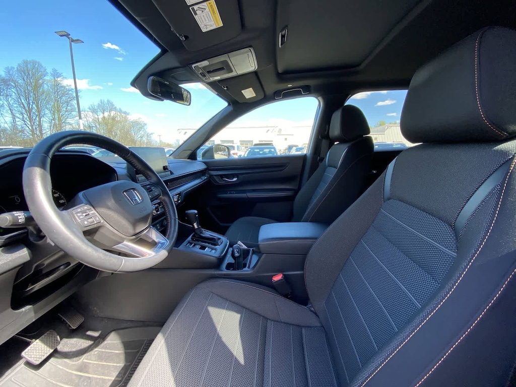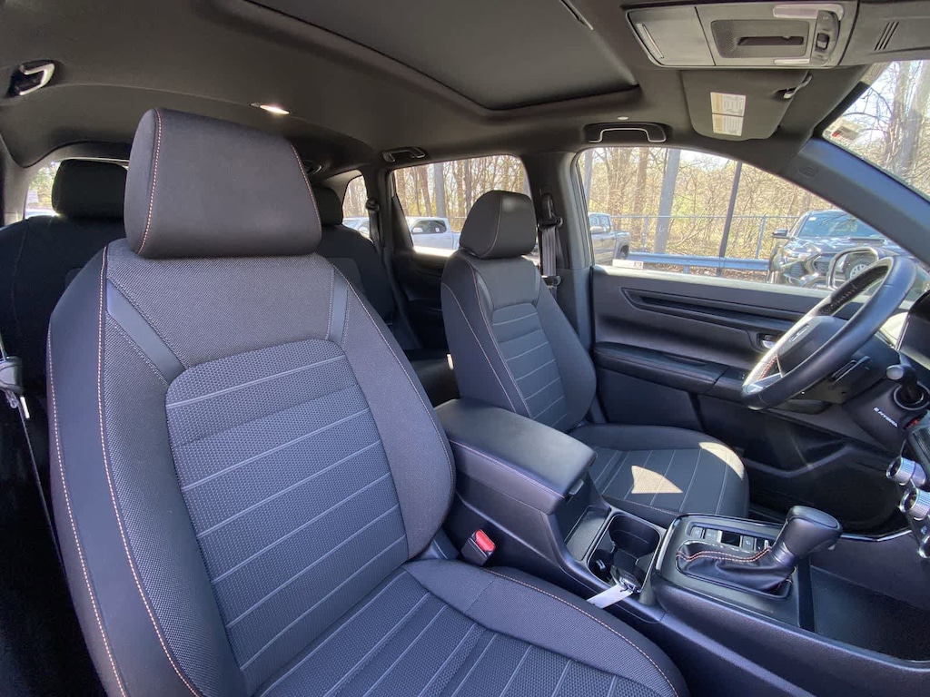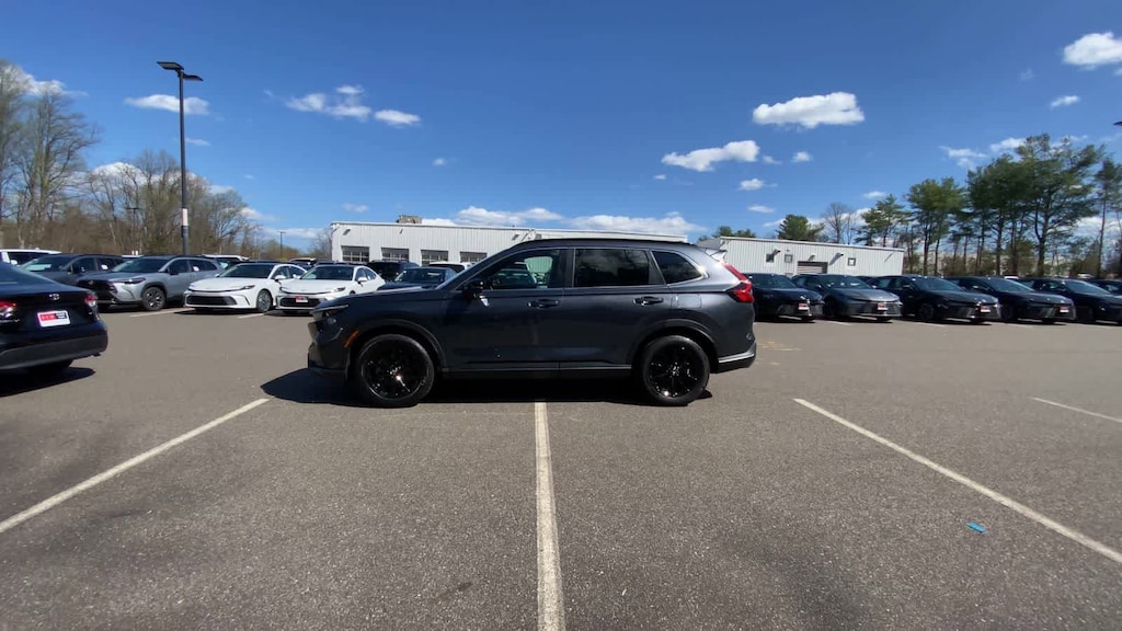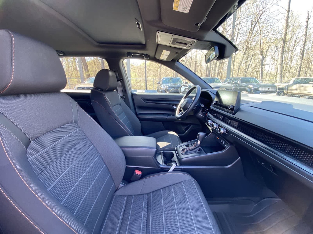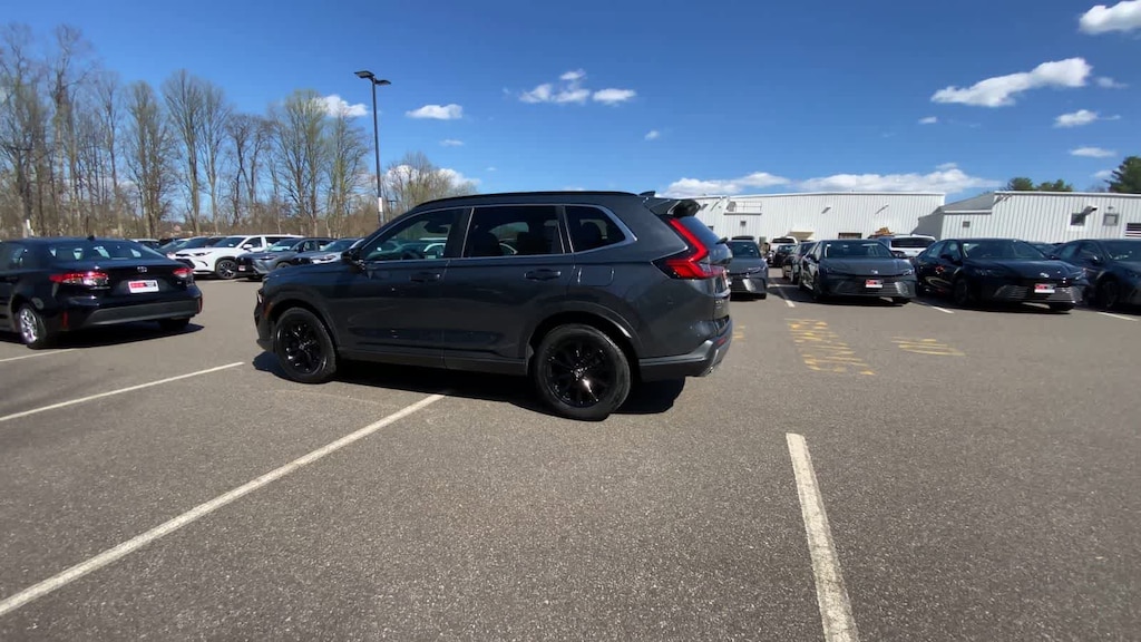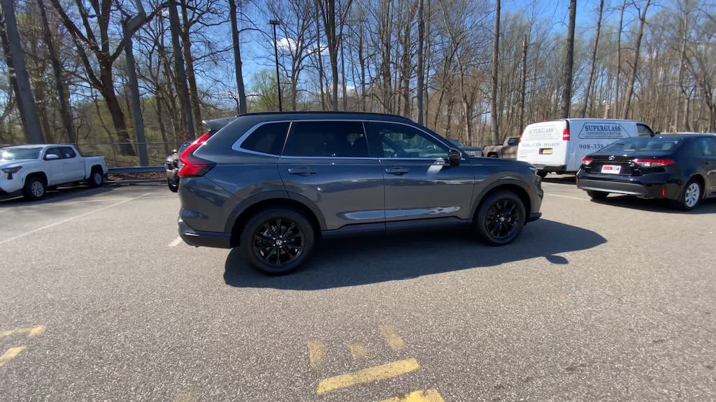 Exterior highlights include the body-color bumpers, power door mirrors, and 18-inch Berlina Black alloy wheels, which give the CR-V Hybrid Sport a sleek and modern appearance. The power moonroof and rear window wiper further enhance the vehicles functionality and style.